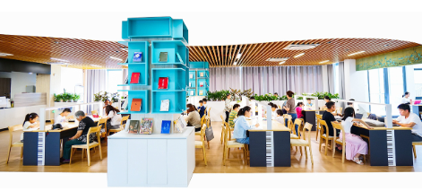 家長和孩子們在圖書館學(xué)習(xí)、閱讀