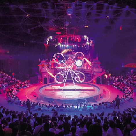 江蘇淹城野生動物世界內(nèi),親子家庭觀看馬戲表演