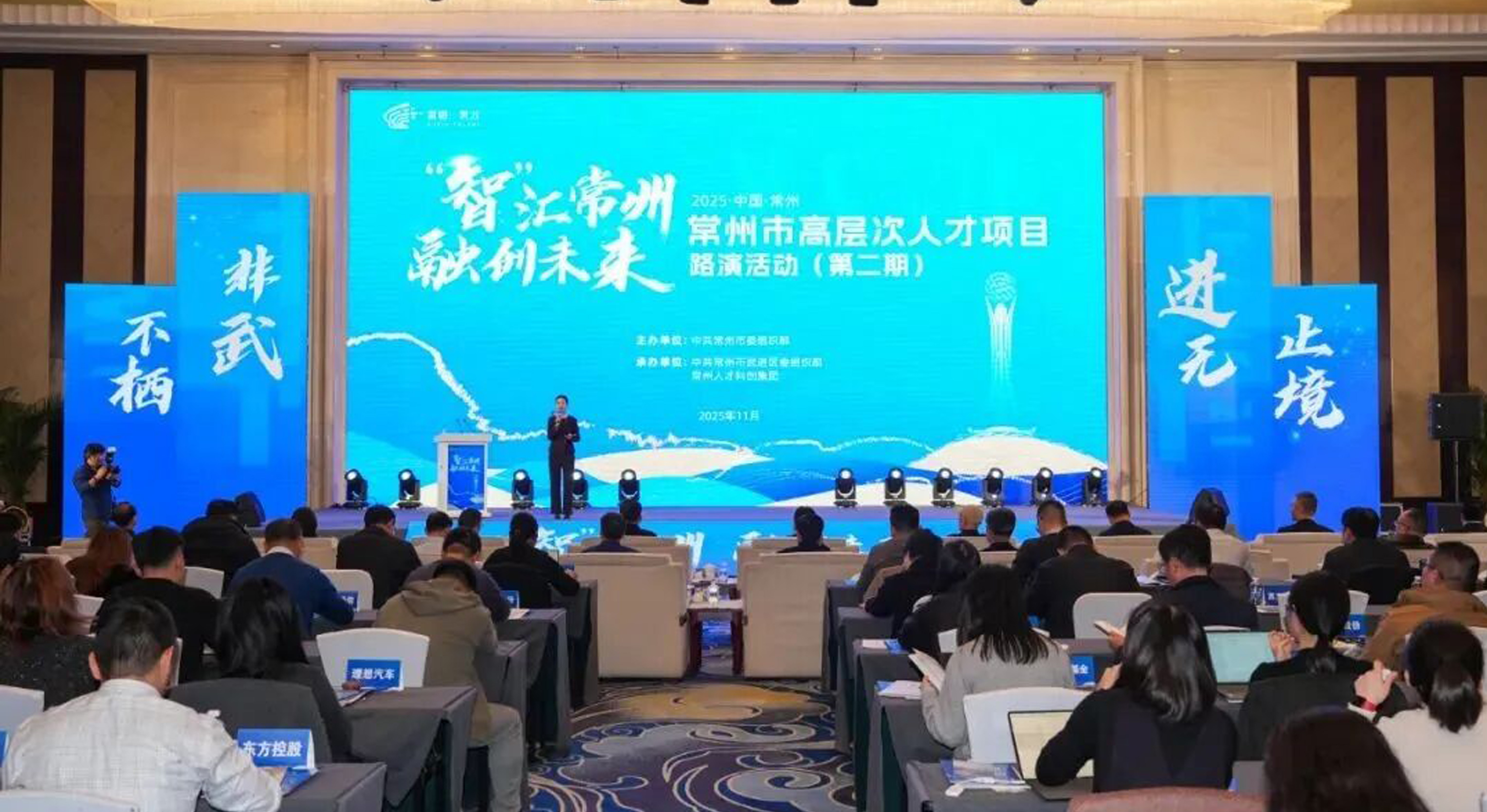 初冬時(shí)節(jié)聚賢才,融創(chuàng)未來啟新程。11月21日下午,“智”匯常州 融創(chuàng)未來——常州市高層次人才項(xiàng)目路演活動(dòng)在我區(qū)舉行。全市上市公司代表、人才企業(yè)代表齊聚一堂,聚焦上市公司與人才企業(yè)雙向賦能的主題,共繪常州產(chǎn)業(yè)高質(zhì)量發(fā)展的新藍(lán)圖。全國工商聯(lián)人才交流服務(wù)中心主任李樹林,副市長潘冬鈴,區(qū)委書記沈東,區(qū)委常委、組織部部長胡泊參加活動(dòng)。