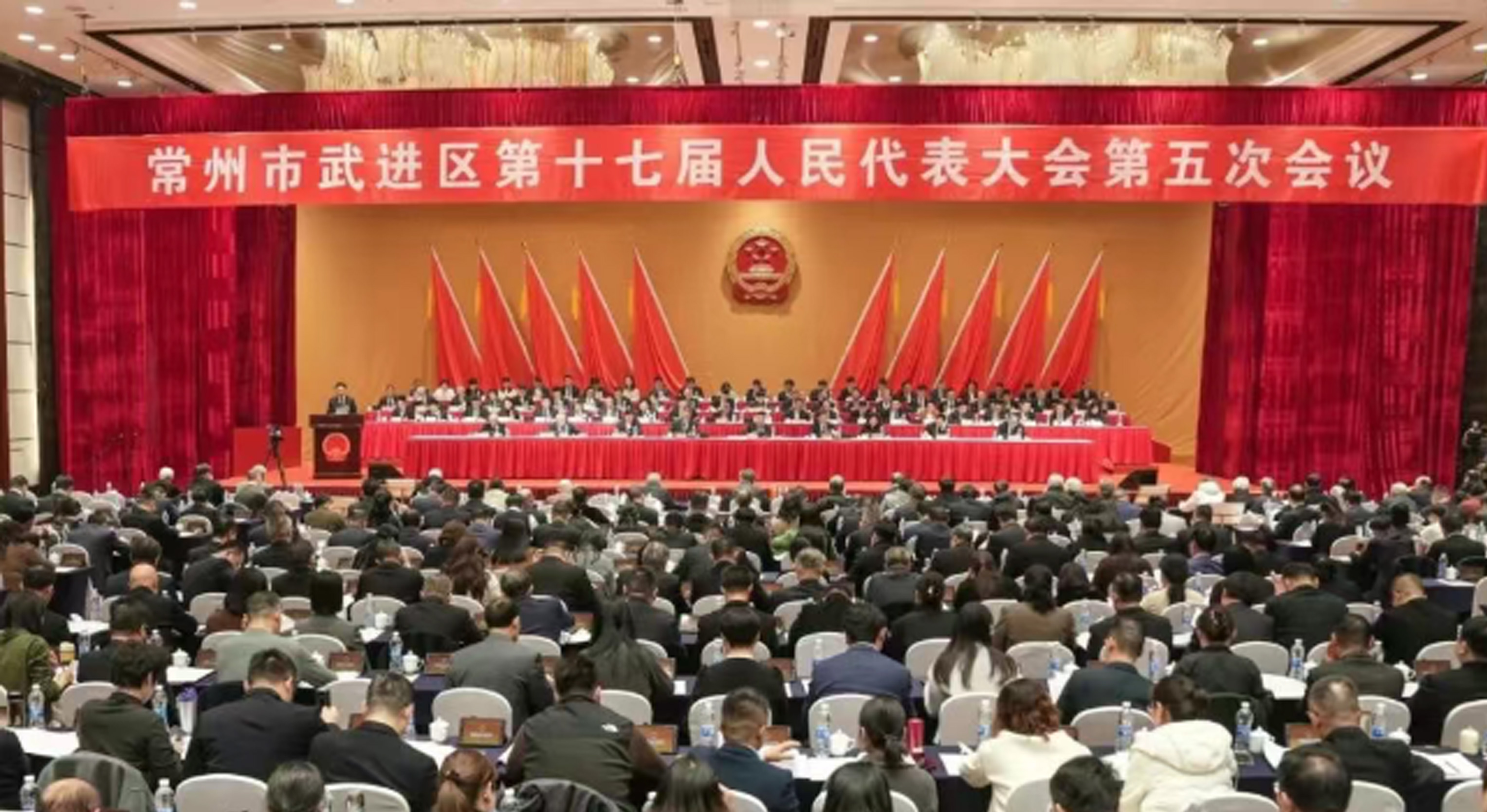 1月15日上午,在雄壯的國(guó)歌聲中,常州市武進(jìn)區(qū)第十七屆人民代表大會(huì)第五次會(huì)議在富都洲際酒店開幕。