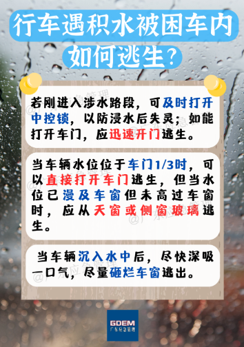 注意躲避高空墜物,勿在臨時構(gòu)筑物、廣告牌附近停留。行車注意繞行積水路段,確保安全。