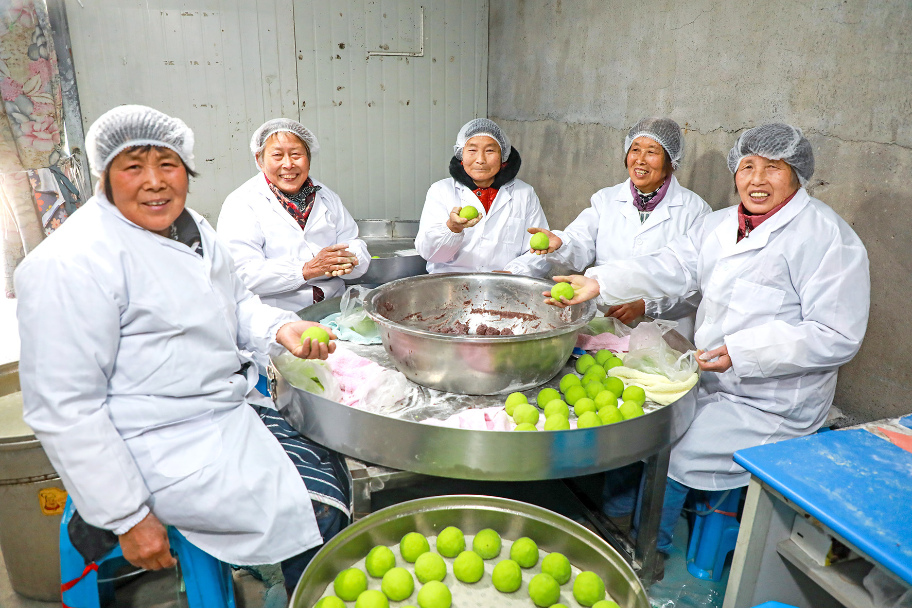 常武地區(qū)盛產(chǎn)糯米,做團(tuán)子、吃團(tuán)子就成了一種廣為流傳的飲食文化。作為過(guò)年最重要的標(biāo)志之一,團(tuán)子不僅是一種美食,更蘊(yùn)涵著美好的象征意義。進(jìn)入臘月后,岑村村委就組織村里的閑散勞動(dòng)力在岑村大米加工廠內(nèi)忙活起來(lái)——將村里種的大米磨成米粉;村里精美小菜園種的蘿卜擦成絲,和成蘿卜絲豬肉餡……“現(xiàn)在和米粉也不需要手工了,村里買了和面機(jī),水和米粉按比例放進(jìn)去就行。”村民吳琴芳告訴記者,每天要做3000多個(gè)團(tuán)子,還有食客慕名來(lái)購(gòu)買,“臨近春節(jié),我們最近做的糕團(tuán)都是分發(fā)給村民的,我們村里有3000多人,每個(gè)人都能分到糕團(tuán),讓大家年年步步高!”