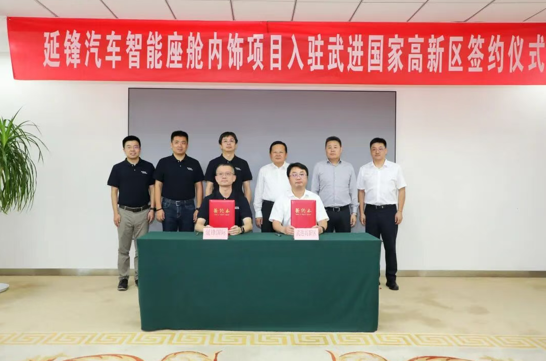 9月11日,延鋒汽車智能座艙內(nèi)飾項(xiàng)目正式簽約落地武進(jìn)國家高新區(qū)。區(qū)委常委,武進(jìn)高新區(qū)黨工委書記、管委會(huì)主任馮旭江會(huì)見了延鋒內(nèi)飾亞太區(qū)副總裁、副總經(jīng)理趙振飛,共同見證項(xiàng)目簽約。
