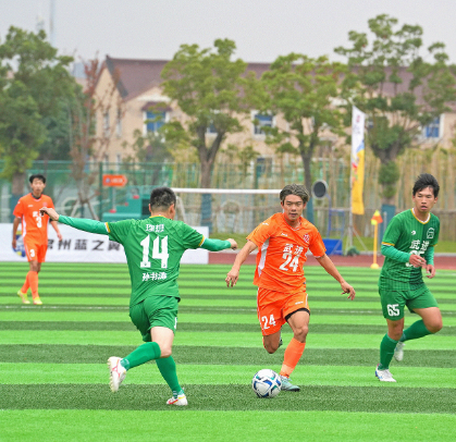 比賽伊始,雙方并未進(jìn)行過多試探,直接進(jìn)入高速對(duì)抗節(jié)奏。擁有多名“蘇超”球員的理想隊(duì),利用流暢的傳控試圖掌控比賽節(jié)奏。奧智隊(duì)的球員大多出自奧智俱樂部,彼此默契度高,比賽經(jīng)驗(yàn)豐富,以穩(wěn)固的防守和犀利的快速反擊應(yīng)對(duì)。第16分鐘,奧智隊(duì)22號(hào)球員杰夫通過與前場的精妙配合,在球門前送出直塞,將比分書寫為1:0。失球后的理想隊(duì)加強(qiáng)了中場逼搶,第31分鐘,52號(hào)球員趙連平一腳破門,將比分扳成1:1。
