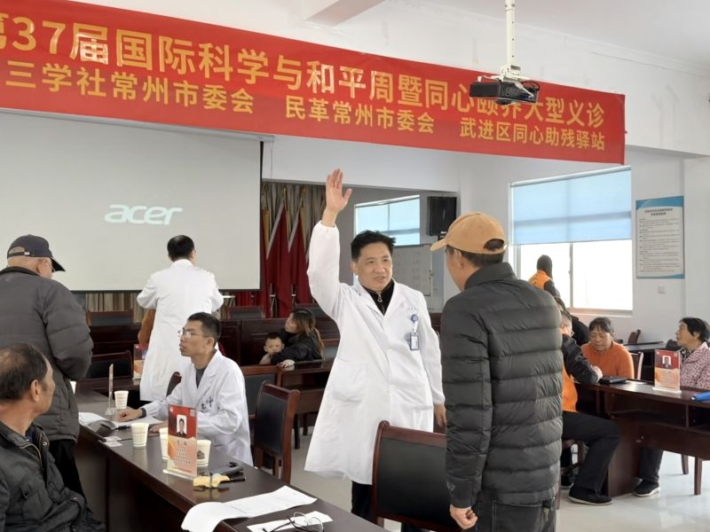 11月15日,九三學(xué)社常州市委會、民革常州市委會、常州市武進(jìn)區(qū)同心助殘驛站赴牛塘鎮(zhèn)、嘉澤鎮(zhèn)、湟里鎮(zhèn)開展第37屆國際科學(xué)與和平周暨“同心頤養(yǎng)”大型義診。來自常州第一人民醫(yī)院、常州第二人民醫(yī)院、常州中醫(yī)院、武進(jìn)人民醫(yī)院、武進(jìn)中醫(yī)院等5家三甲醫(yī)院的泌尿外科、腎內(nèi)科、眼科、肛腸科、甲狀腺乳腺、心內(nèi)科、營養(yǎng)科、麻醉科、血液風(fēng)濕科、骨傷科等科類的10位臨床醫(yī)療專家下鄉(xiāng)為群眾送健康,其中九三學(xué)社社員專家7名,民革黨員3名。國際科學(xué)與和平周期間,九三學(xué)社進(jìn)鄉(xiāng)村送健康已有15年。