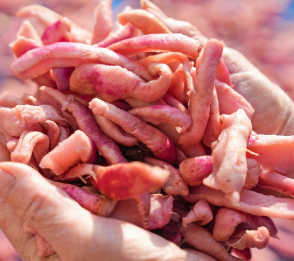 每年12月是制作臘腸的最佳時節(jié),尋常人家的陽臺或院落里,一串串紅潤油亮的臘腸在冬日陽光下靜靜風干。走進位于高新區(qū)北區(qū)的十里農貿市場,一家臘腸加工店里,商戶劉正祥正在制作臘腸:“一般選用肥瘦相間的豬后腿肉,加入黃酒、醬油、糖和秘制香料。晾曬后,肉香與香料會慢慢融合,形成本地人都喜歡的甜咸適中的口味。”