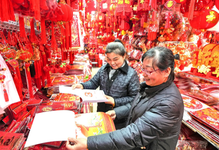 而在湖塘路橋小商品市場,選購節(jié)慶用品的顧客絡繹不絕,大家提著滿滿當當的購物袋,臉上都洋溢著迎新年的喜悅。
