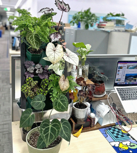 每個(gè)精心布置的工位,都是主人個(gè)性的延伸。有人打造“森林系”工位,滿眼綠意;有人布置“治愈系”角落,暖光臺(tái)燈、舒適靠墊、香薰設(shè)備一應(yīng)俱全;還有人創(chuàng)造“極簡(jiǎn)風(fēng)”空間,僅一盆植物、一件藝術(shù)品,卻韻味十足。