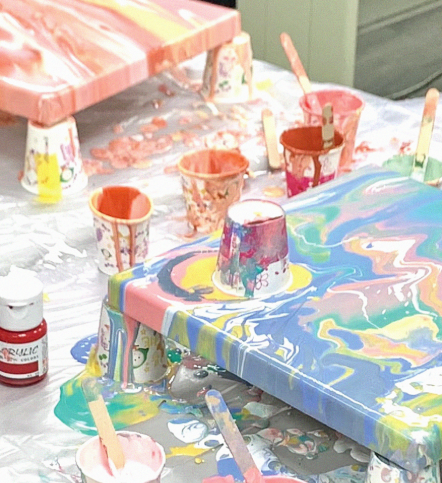 流體畫,又稱澆注畫,通過將不同色彩的丙烯顏料混合后傾倒在畫布上,任其自然流淌、交融,形成抽象畫面。它打破了傳統(tǒng)繪畫對精確性的要求,讓創(chuàng)作者專注于色彩與形態(tài)的自然互動,體驗(yàn)材料本身帶來的驚喜。也正是這種不可完全預(yù)測的特性,讓每一幅作品都成為獨(dú)特的藝術(shù)表達(dá)。
