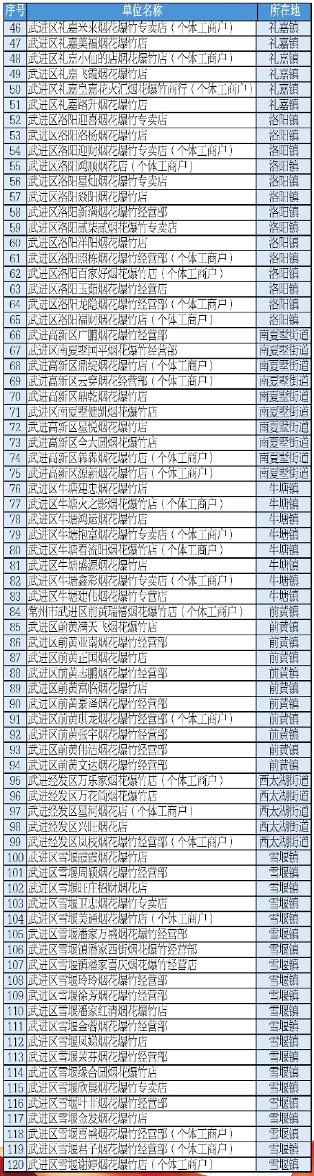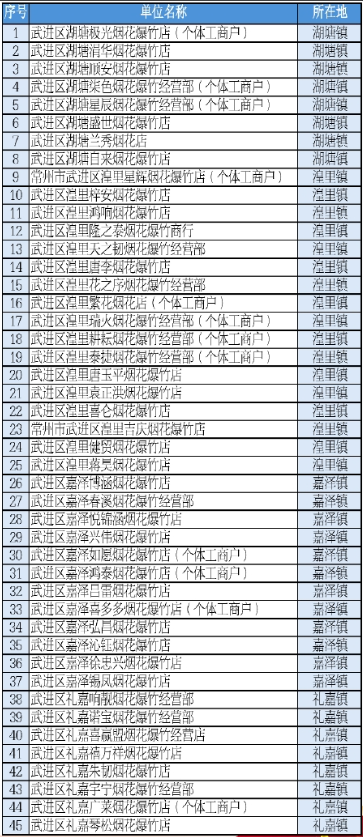武進(jìn)煙花爆竹零售持證名單