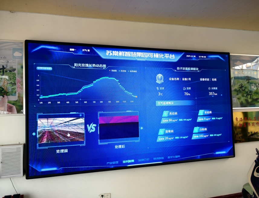 在常洛果品專業(yè)合作社,考察團(tuán)一行深入交流學(xué)習(xí)了智慧園藝建設(shè)情況。合作社通過智慧果園的可視化平臺,實(shí)現(xiàn)了現(xiàn)場環(huán)境的信息化、智能化遠(yuǎn)程管理,無人值守,精準(zhǔn)調(diào)控。