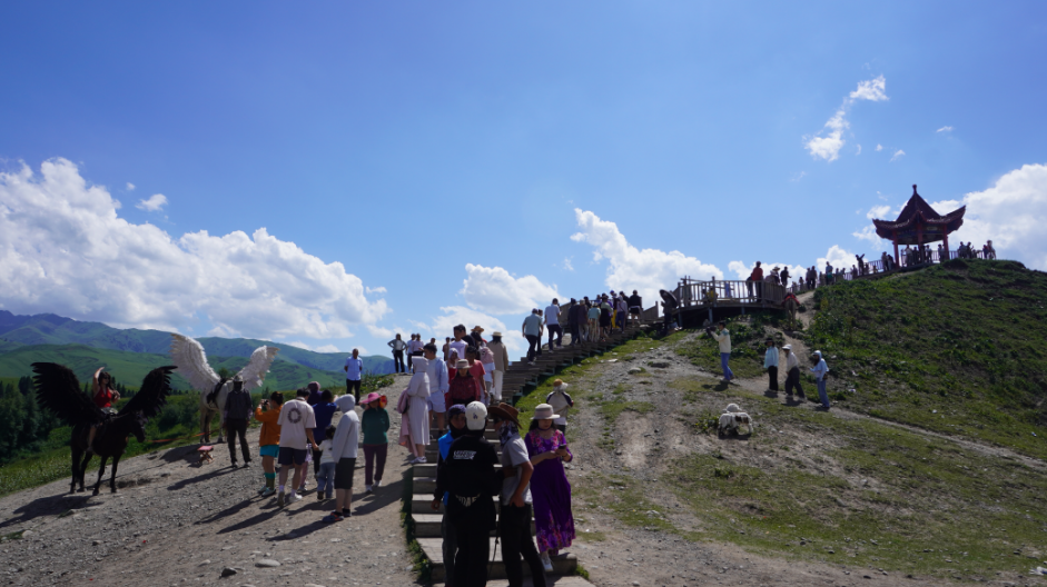 七月的天山北麓,S315省道宛如一條絲帶,串聯(lián)起尼勒克縣唐布拉草原的蜿蜒綠波,在這片被譽為"中國天然畫廊"的草原上,日均超萬人次的游客流量正書寫著鄉(xiāng)村振興的新篇章。曾經(jīng)以牧業(yè)為主的當?shù)厝罕?,如今吃上?quot;旅游飯",走出了一條生態(tài)保護與經(jīng)濟發(fā)展雙贏的新路子。