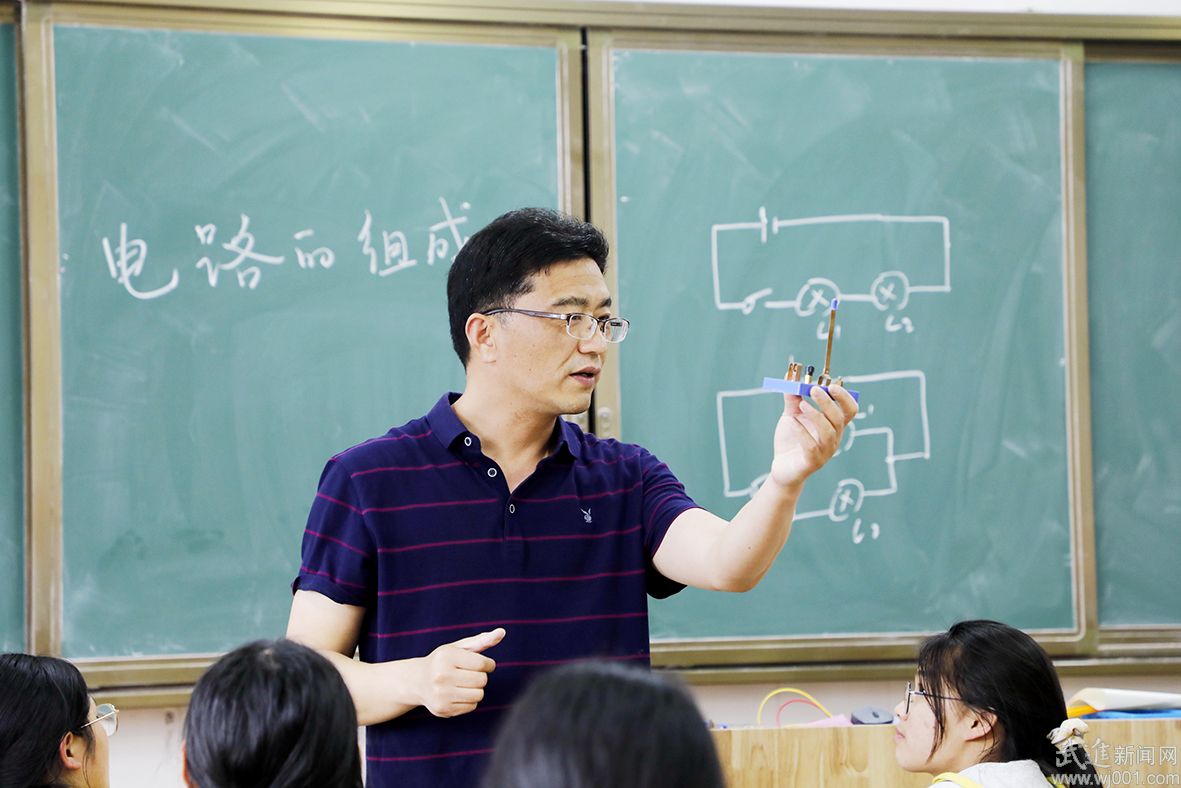 武進(jìn)新聞網(wǎng)訊(記者 蔣雯)在武進(jìn)區(qū)淹城初級(jí)中學(xué)校園里,有這樣一位老師,他總是快步如飛,笑聲朗朗,與他交談相處,如沐春風(fēng),如飲甘泉……他仿佛隨身攜帶著一個(gè)小太陽(yáng),自成一個(gè)小磁場(chǎng),只要他教過(guò)的孩子,沒有一個(gè)不被他的“魔力磁場(chǎng)”感染與吸引。這位“魔力”老師,就是淹城初中的教育明星——常州市優(yōu)秀教育工作者、初三物理老師、擔(dān)任10多年班主任的倪永斌。