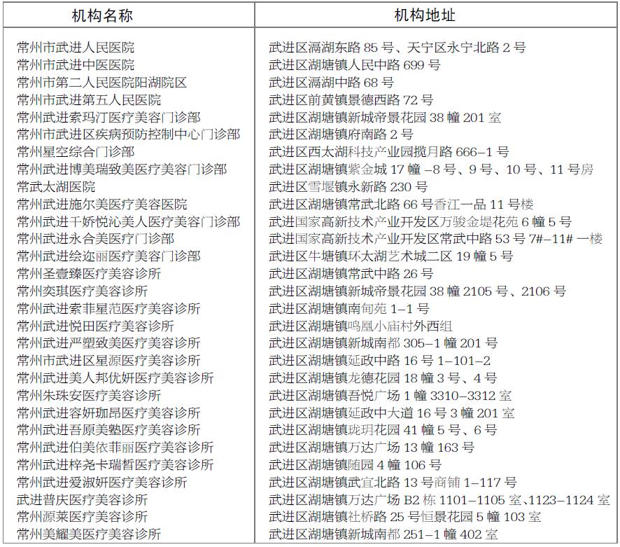 附:武進(jìn)區(qū)醫(yī)療美容機(jī)構(gòu)名單