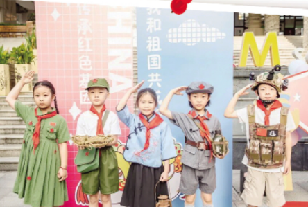 星河實(shí)驗(yàn)小學(xué)門口成了一片醒目的“紅色海洋”。學(xué)生們化身“小小追夢(mèng)人”,用創(chuàng)意服裝完成特別“變身”:有的身著迷彩服,眼神堅(jiān)毅如小戰(zhàn)士;有的手持紙筆,扮成懷揣文學(xué)夢(mèng)的小作家;有的穿白大褂、戴聽診器,模仿醫(yī)護(hù)人員;還有的以“小科學(xué)家”造型亮相,立志探索科學(xué)奧秘……“我扮的是聶耳,他寫的《義勇軍進(jìn)行曲》超有力量。”二年級(jí)學(xué)生陳諾驕傲地展示衣角的白鴿徽章,“這代表和平,我希望世界永遠(yuǎn)沒有戰(zhàn)爭。”稚嫩話語里滿是對(duì)英雄的崇敬。