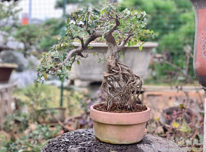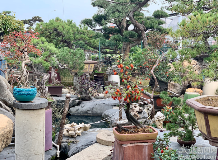 走進(jìn)華杰景藝,仿若進(jìn)入微縮的大自然。庭院中,擺滿了大大小小、形態(tài)各異的盆景,細(xì)數(shù)下來,有近百種800余盆,每一盆都造型優(yōu)美、活靈活現(xiàn),每一處都形成了旖旎的風(fēng)景。鵝卵石和古磨盤鋪就的小徑兩側(cè),假山和流水游魚相映成趣,別有一番景致。“這些盆景都是我從全國各地‘淘’到的,還有些是從日本進(jìn)口的。”溫華杰說,每一盆盆景的造型都是經(jīng)過一番構(gòu)思后修剪打造而成,造型的過程就是根據(jù)植物的生長形態(tài)進(jìn)行藝術(shù)加工,使之達(dá)到一定藝術(shù)效果。